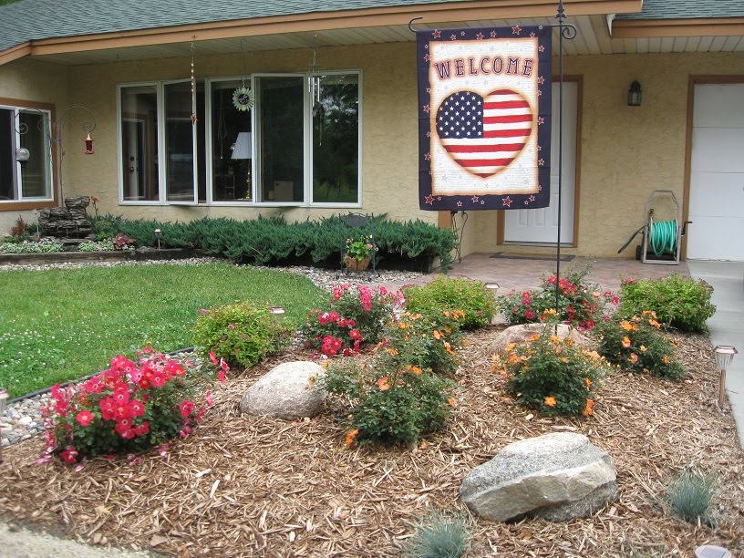 Earlier this summer I had some landscaping done. A “dead” corner outside my front door was given new life by removing a nasty scrub tree and creating a triangular planting area with my existing shrubs and adding 7 shrub roses, some grasses, and a few boulders. The shrub roses bloomed profusely in the first weeks but a few weeks later had only “spent” blooms with few new blooms. The landscapers who had installed them came back to finish some driveway work, and one of them took the time to show me that I needed to “dead-head” the roses for them to continue to bloom well. I did that at once, and within a couple of days, my roses were beautiful and covered with new blooms again! In the weeks since, it’s been too hot or too wet to get out there and tend to the roses. I let them go. Again, there are very few new blooms and a lot of spent blossoms. Yesterday I spent several hours getting sunburned “dead-heading” them again.